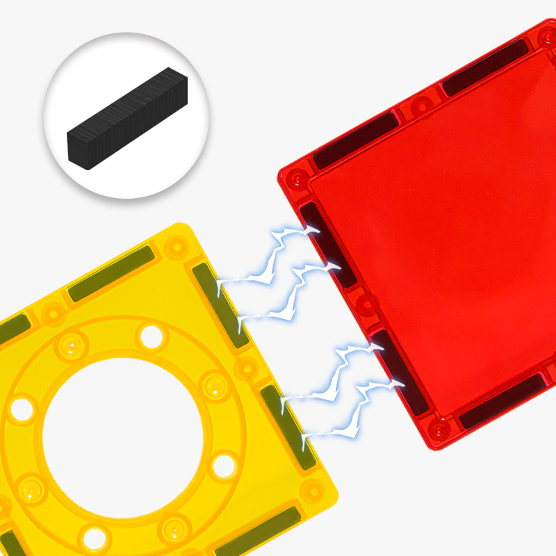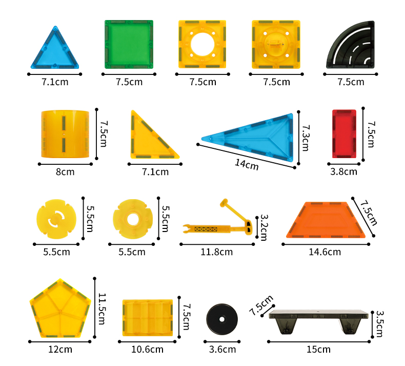 This magnetic building set is fully compatible with all LELINO series with dimensions of 7.5x7.5 cm. As well as with magnetic building sets of other brands with dimensions of 7.5 × 7.5 cm. For example from brands like Magna Tiles, Connetix, PicassoTiles, PlayMags, Colormag and others.