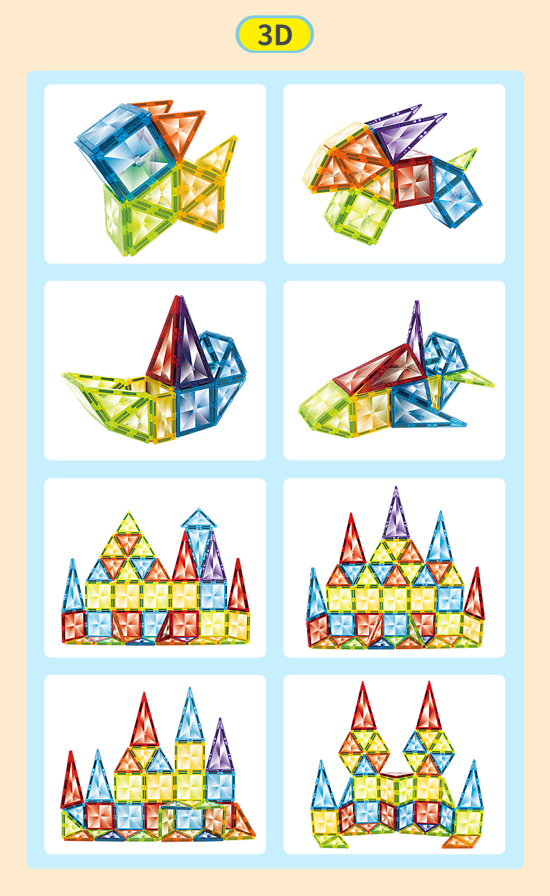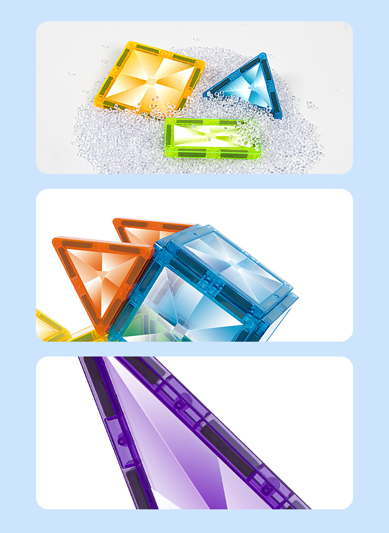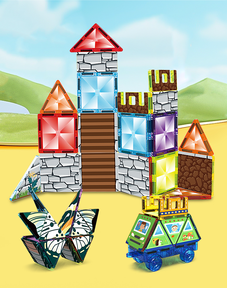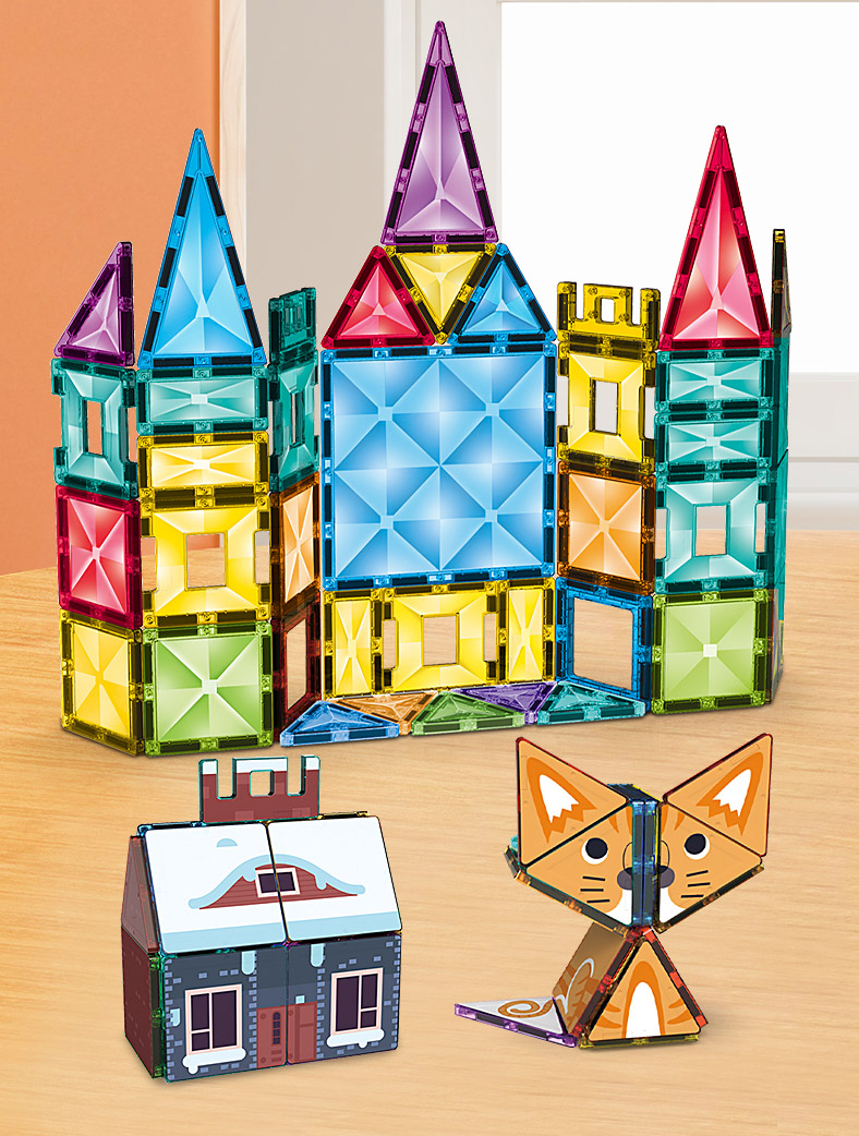 This magnetic tiles series is perfect for children who love colours, brightness and detailed building, and for parents who enjoy creating together. It is made from safe, durable, high-quality materials and is suitable for children aged 3 and above.