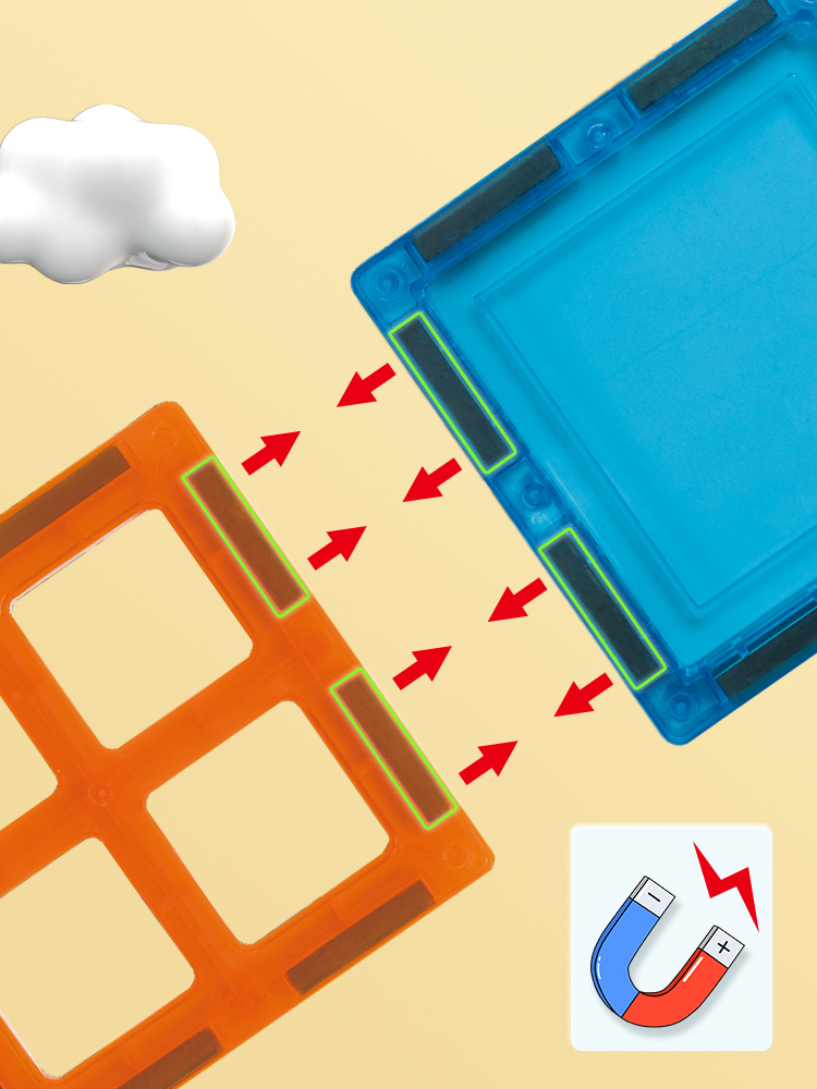 Discover a world of creativity with magnetic tiles LELINO Play, the ideal entry-level series for children starting their magnetic building journey. Each 7.5 × 7.5 cm tile connects easily and firmly with strong magnets, allowing kids to build houses, towers, castles, bridges and various 3D shapes according to their imagination.
